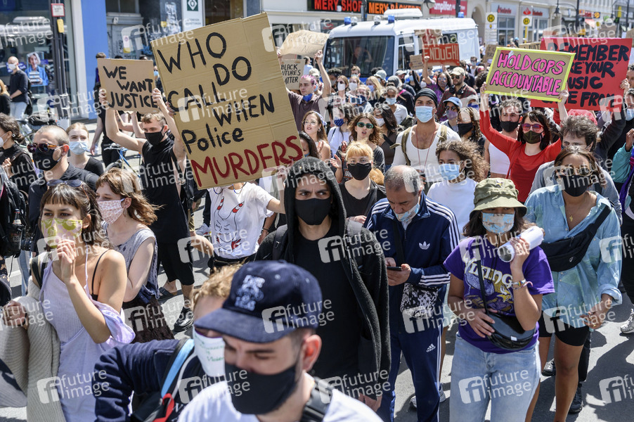 'Black Lives Matter'-Protestdemonstration in Berlin gegen rassistisch motivierte Polizeigewalt nach dem Tod des Afroamerikaners George Floyd in Minneapolis/USA. Zu der Demonstration kamen über 2000 Menschen und liefen vom Mehringdamm bis zum Hermannplatz. Berlin, 31.05.2020