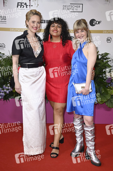 Wanda Perdelwitz, Sara Fazilat und Laura Fischer bei der 75. Verleihung des Deutschen Filmpreises 2025 im Theater am Potsdamer Platz. Berlin, 09.05.2025
