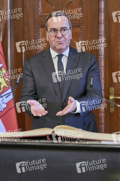 Boris Pistorius beim Eintrag in das Goldene Buch der Stadt Hannover im Neuen Rathaus. Hannover, 12.11.2024