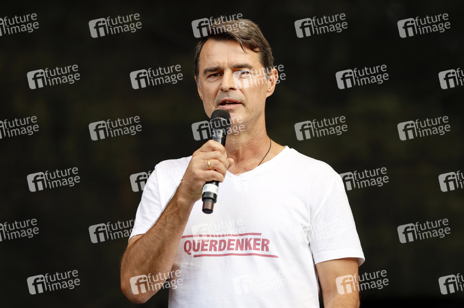 Fußballspieler Thomas Berthold - Demonstranten verschiedener Gruppierungen wie etwa der Initiative Querdenken 711 protestierten mit einer Großdemonstration in Berlin gegen die bestehenden Maßnahmen zur Eindämmung der Corona-Pandemie. Wegen Nichteinhaltung der polizeilichen Auflagen wurde die Demonstration durch die Polizei beendet. Es gab Rangeleien und Festnahmen. Berlin, 29.08.2020