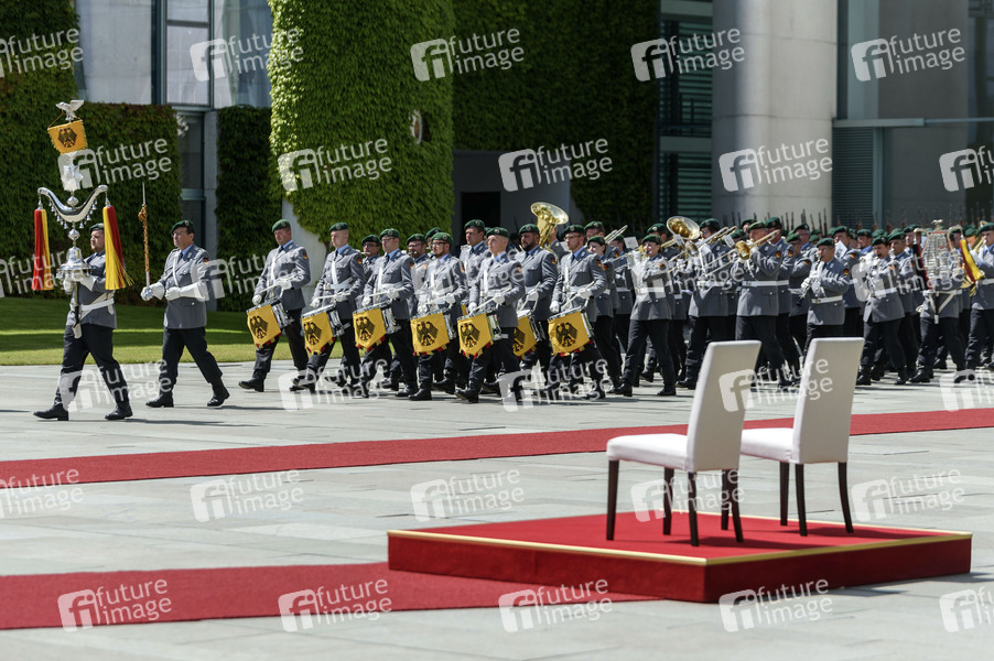 Beim Empfang mit militärischen Ehren für die dänische Ministerpräsidenten stehen Stühle im Hof des Bundeskanzleramts bereit. Berlin, 11.07.2017