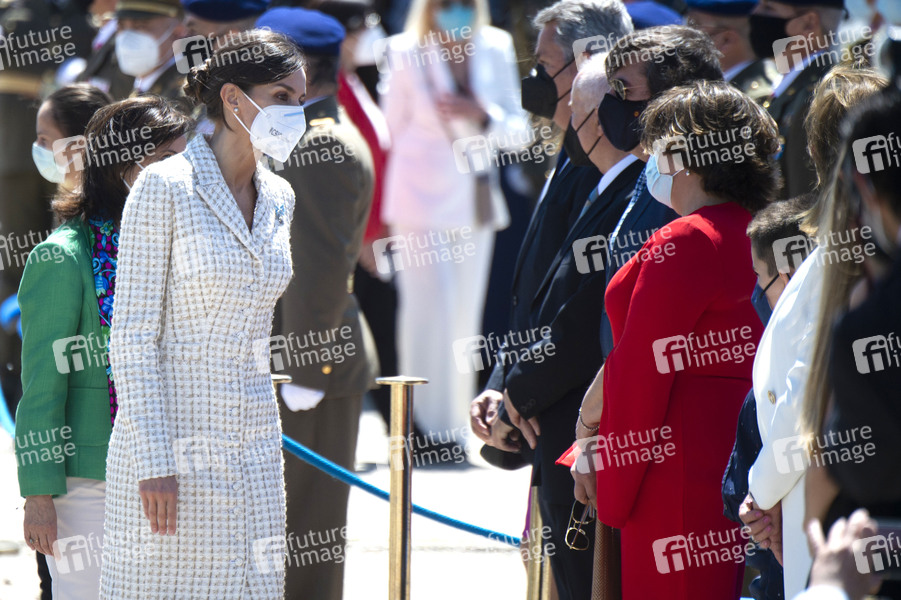 Königin Letizia von Spanien bei der Zeremonie der Übergabe der Nationalflagge an die ACAVIET (Luftfahrtakademie der Armee) in der Helipuerto Base Coronel Mate. Colmenar Viejo, 07.05.2021