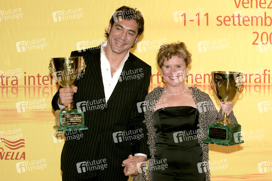 Javier Bardem mit dem Coppa Volpi für den besten Darsteller in 'Mar adentro' und Imelda Staunton mit dem Coppa Volpi für die besten Darstellerin in 'Vera Drake' bei der Closing Ceremony mit Preisverleihung auf der Biennale di Venezia 2004 / 61. Internationale Filmfestspiele von Venedig im Teatro la Fenice. Venedig, 11.09.2004