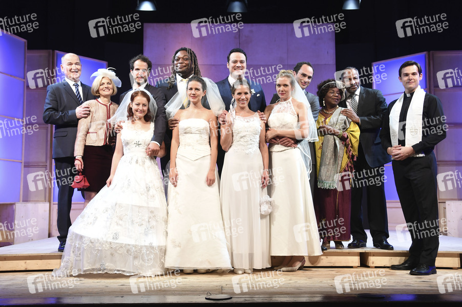 Ralf Novak, Mona Perfler, Katherina Gschnell, Nadim Jarrar, Laura Rauch, Hans-jürgen Helsig, Fee Denise Horstmann, Benedikt Uy, Yael Hahn, Benedikt Zimmermann, Ida Ouhe-Schmidt, Eddie Jordan und Alexander Mattheis bei der Fotoprobe vom Theaterstück 'Monsieur Claude und seine Töchter' in der Komödie im Bayerischen Hof. München, 09.09.2019