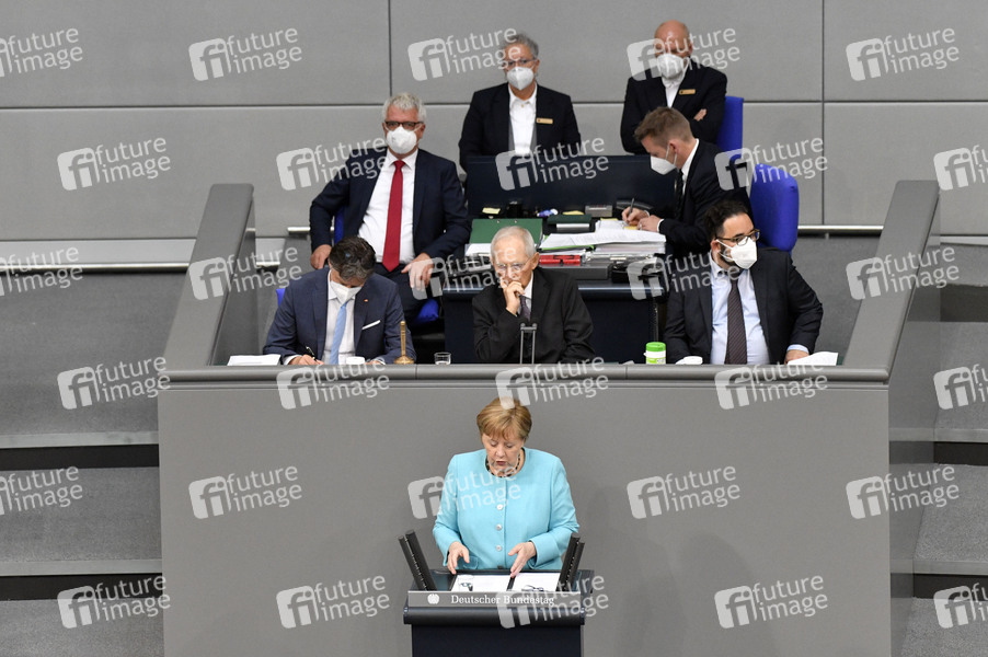 Angela Merkel und Wolfgang Schäuble in der 236. Sitzung des Deutschen Bundestages im Reichstagsgebäude. Berlin, 24.06.2021