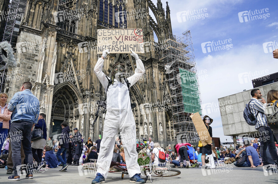 Demonstrationen des Bündnis Köln gegen Rechts und Gegner der Corona Corona Massnahmen auf dem Roncalliplatz. Köln, 16.05.2020