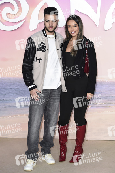 Junior Andre mit Freundin Jasmine Orr bei der Premiere des Animationsfilms 'Moana 2 / Vaiana 2' im Cineworld Leicester Square. London, 24.11.2024