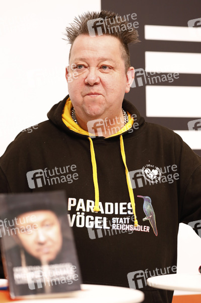 Sebastian Krumbiegel in der Deutschlandfunk Kultur-Sendung 'Tonart' auf der Leipziger Buchmesse 2024 auf dem Messegelände. Leipzig, 22.03.2024