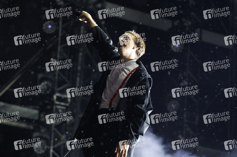 Felix Brummer von Kraftklub live auf dem Lollapalooza Festival Berlin 2022 im Olympiastadion und Olympiapark. Berlin, 24.09.2022