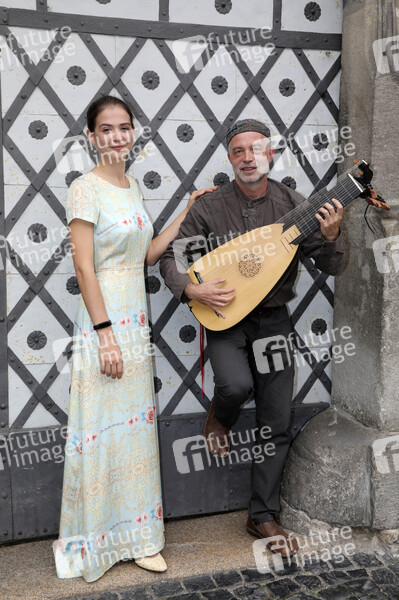 Anna Lukshina und Jakov Steiman beim Konzert im Flüsterbogen mit Gesang und Laute im Haus zum Flüsterbogen am Untermarkt. Görlitz, 22.08.2021