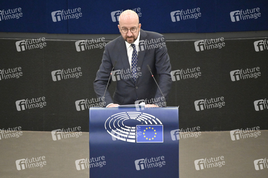 Charles Michel bei einer Plenartagung zu den jüngsten Entwicklungen des Krieges gegen die Ukraine und der EU-Sanktionen gegen Russland und deren Umsetzung im Plenarsaal des Europäischen Parlaments. Straßburg, 06.04.2022