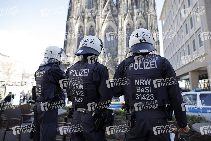 Eine unangemeldete Demo von Kritikern der Corona-Maßnahmen vor dem Kölner Dom wurde durch die Polizei aufgelöst. Die Demonstranten hatten sich ohne Masken und Mindestabstand versammelt und Parolen wie 'Widerstand! Widerstand!' skandiert. Die Teilnehmer protestieren gegen die aus ihrer Sicht überzogenen Corona-Maßnahmen und fürchten die Etablierung einer Corona-Diktatur. Köln, 27.03.2021