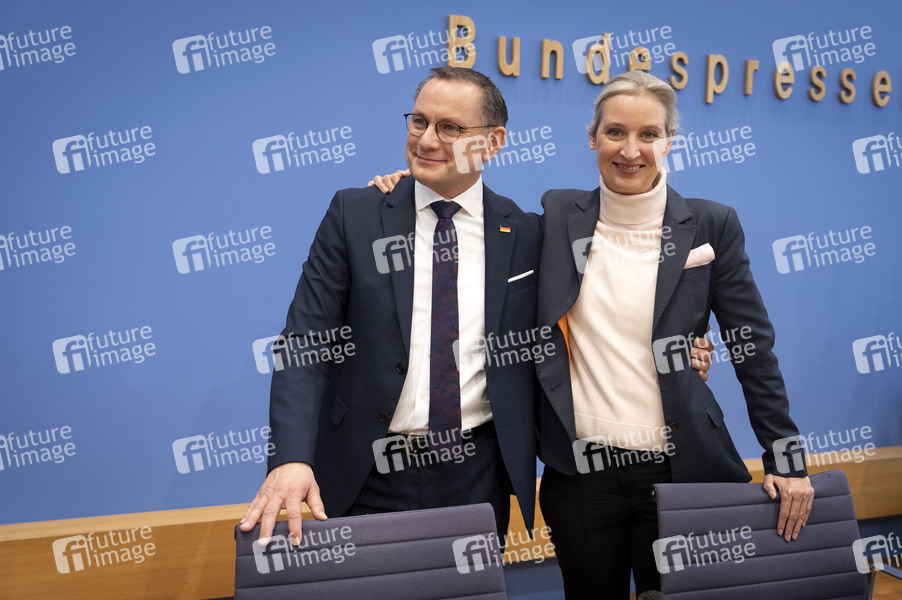 Tino Chrupalla und Alice Weidel bei der Bundespressekonferenz AfD - Zu den Bundestagswahlen im Haus der Bundespressekonferenz. Berlin, 24.02.2025