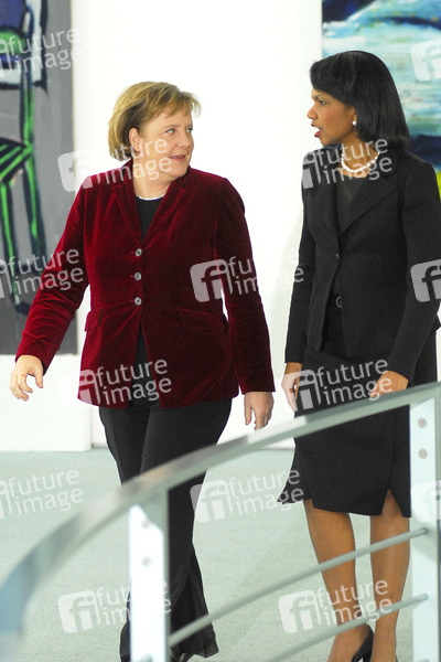Angela Merkel und Condoleezza Rice bei einem Treffen am Rande des Treffens des Nahost-Quartetts im Bundeskanzleramt. Berlin, 21.02.2007