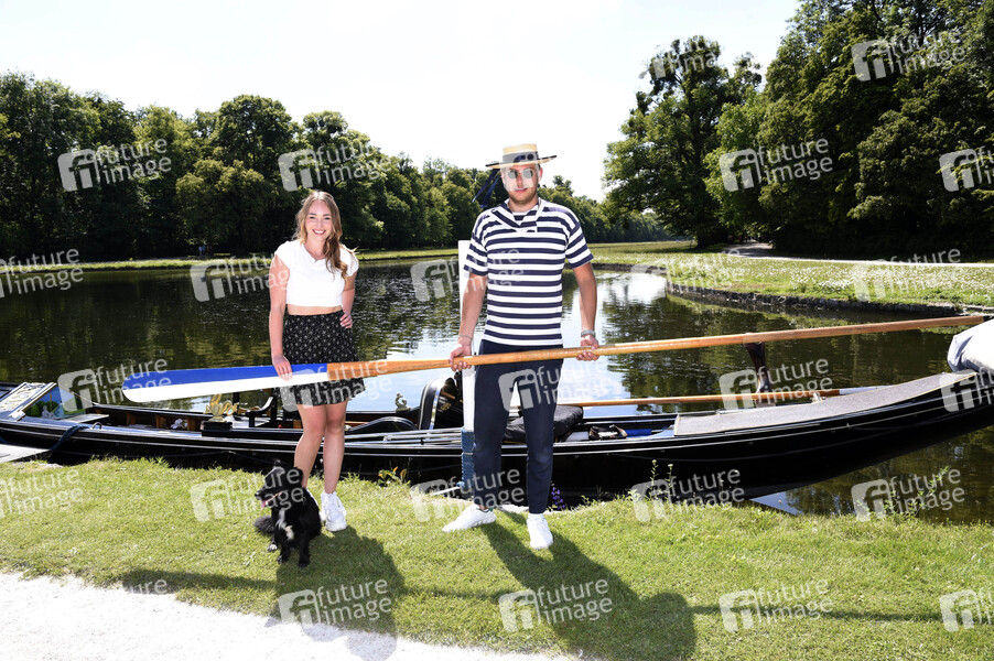 Anna Juliana Jaenner mit Gondoliere Maximilian Koch jr. bei einer Gondelfahrt in der 'Gondel Nymphenburg' im Schlosspark vom Schloss Nymphenburg. München, 13.06.2020