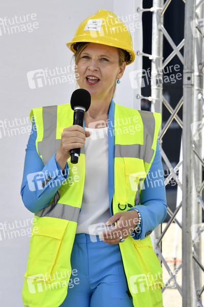 Tanja Wielgoß bei einer moderierten Fragerunde anlässlich der Inbetriebnahme des neuen gasgefeuerten Heizkraftwerks mit einer Turbine aus dem Berliner Turbinenwerk der Siemens AG im Vattenfall-Heizkraftwerk in der Rhinstraße. Berlin, 03.06.2020