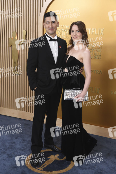 Kenichiro Thomson mit Begleitung bei der Verleihung der 31. Screen Actors Guild Awards 2025 im Shrine Auditorium and Expo Hall. Los Angeles, 23.02.2025