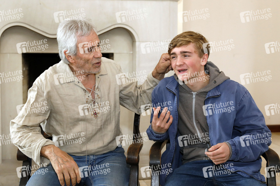 Gojko Mitic und Luis Vorbach beim Fototermin am Set des Kinofilms 'Alfons Zitterbacke - Chaos auf der Klassenfahrt' auf Schloss Ostrau. Ostrau, 21.10.2021