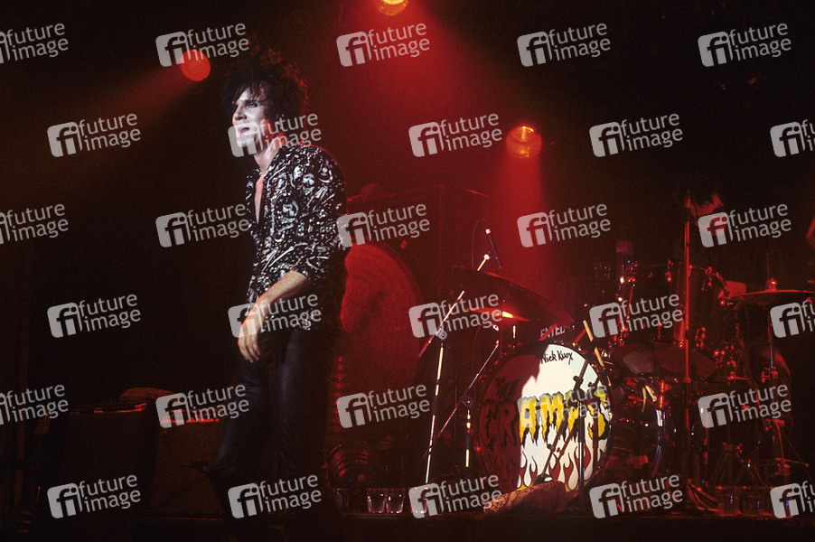 Lux Interior und Nick Knox von The Cramps live in der Brixton Academy. London, 10.04.1984