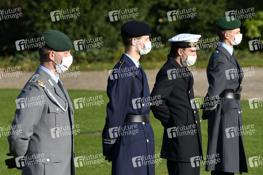 Soldaten bei der Ansprache des Bundespräsidenten beim Feierlichen Gelöbnis zum 65. Gründungstag der Bundeswehr vor dem Schloss Bellevue. Berlin, 12.11.2020