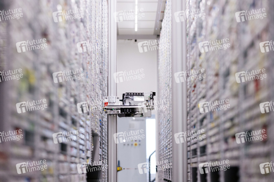 Im modernen Versorgungszentrum der Kronen-Apotheke Marxen OHG unterstützt der Roboter Knapp-Store die Mitarbeiter bei der Auswahl, Portionierung und Verteilung von Medikamenten für Krankenhäuser und Kliniken. In einem angrenzenden Labor mit Reinraum werden zudem Zytostatika für die Krebs-Therapie unter sterilen Bedingungen hergestellt. (Themenbild, Symbolbild) Wesseling, 27.05.2021