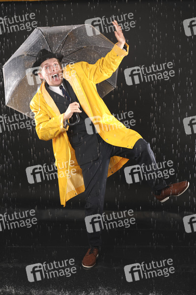 Fotoshooting, Unterhaltung, Entertainment, Kultur, Singin' in the Rain, Singing in the Rain, Musical, Regen, Wetter, Regenschauer, Nieselregen, Platzregen, Niederschlag, Gewitter, Wasser, Wetterprognose, Wettervorhersage, Regenschirn, Schirm, Regenjacke, Südwester, Regenkleidung, Regenwetter, Symbolbild, Symbolfoto