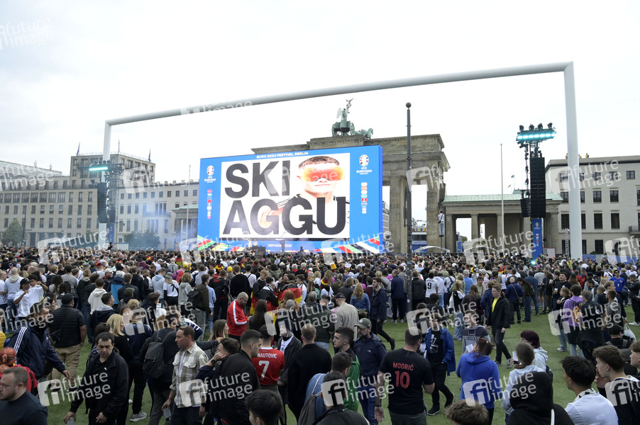Fans auf der Fan Zone der UEFA EURO 2024 vor dem EM-Eröffnungsspiel Deutschland vs. Schottland am Brandenburger Tor. Berlin, 14.06.2024