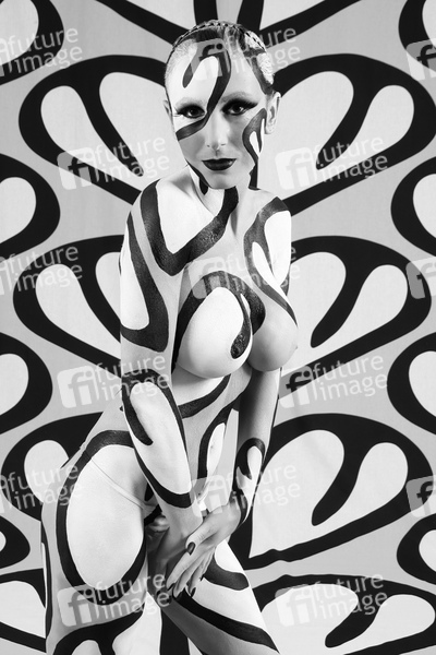 Bodypainting, Stoffdesign Anna Efverlund, Erotik, Frau, nackt, drinnen, weiblich, Muster, Chamäleon, erotic, woman, nude, indoor, female, chameleon