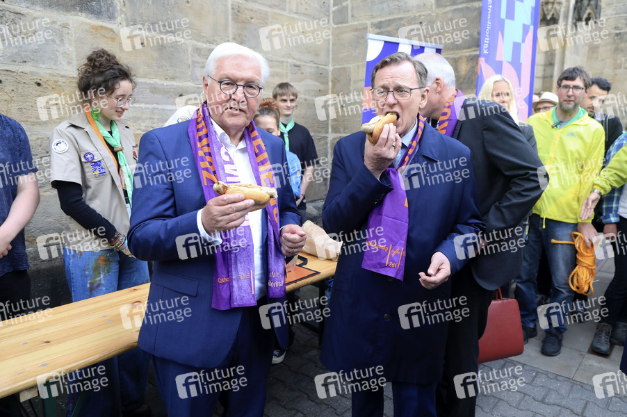 Frank-Walter Steinmeier und Bodo Ramelow beim Rundgang nach der Eröffnungsfeier des 103. Deutschen Katholikentages auf dem Erfurter Domplatz. Erfurt, 29.05.2024