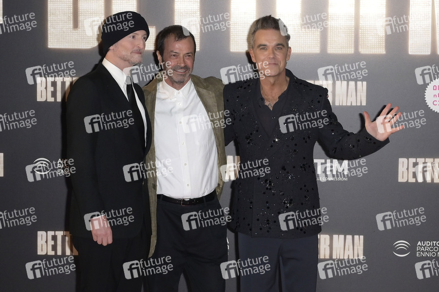 Michael Gracey, Andrea Occhipinti und Robbie Williams bei der Premiere des Kinofilms 'Better Man - Die Robbie Williams Story' im Auditorium Parco della Musica. Rom, 06.12.2024