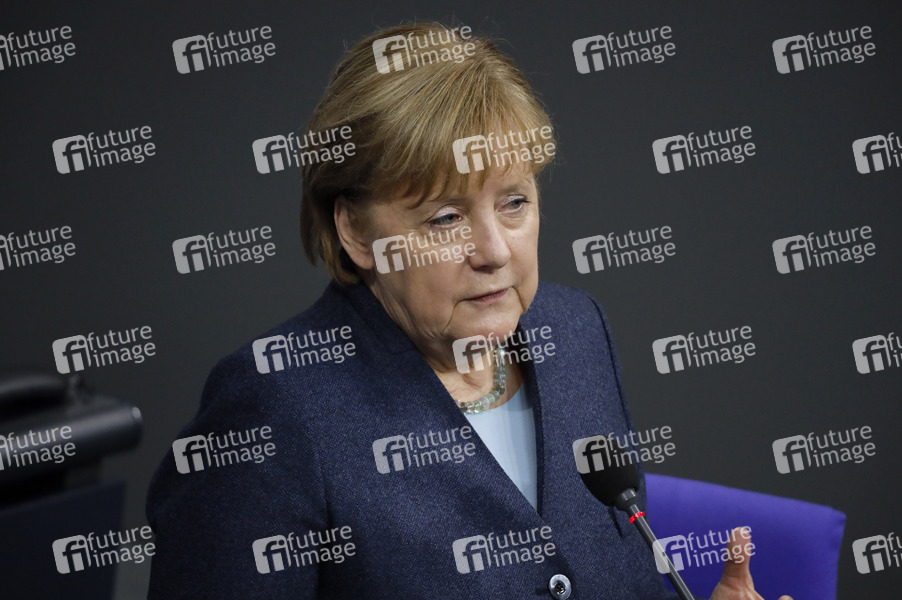Angela Merkel in der 201. Sitzung des Deutschen Bundestages im Reichstagsgebäude. Berlin, 16.12.2020