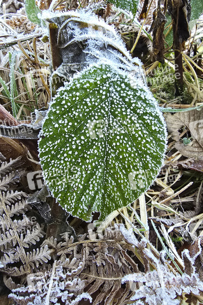 Euin von Frost befallened Blatt. (Symbolfoto, Thememboto) Bad Münder, 09.02.2025