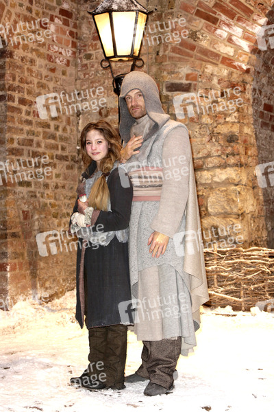Lea Mueller und Joerg Hartmann beim Fototermin am Set des Fernsehfilms 'Das Mädchen mit den Schwefelhölzern' aus der ARD-Märchenreihe 'Sechs auf einen Streich' in der Zitadelle Spandau. Berlin, 18.03.2013