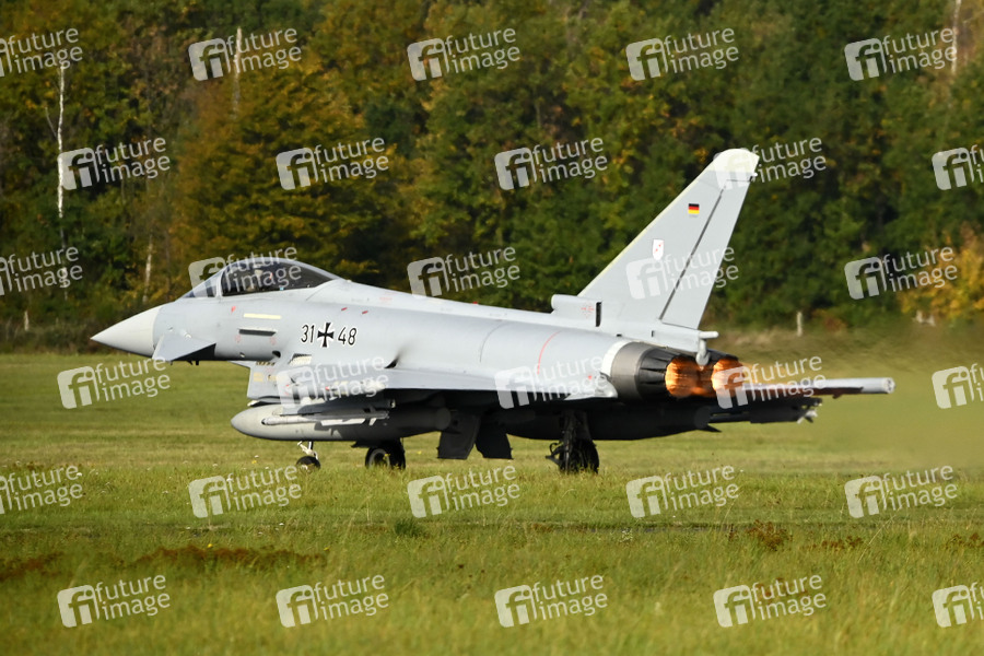 Eurofighter beim Start während des Besuchs der Bundesverteidigungsministerin Annegret Kramp-Karrenbauer beim Taktischen Luftwaffengeschwader 31 'Boelcke'. Nörvenich, 27.09.2019