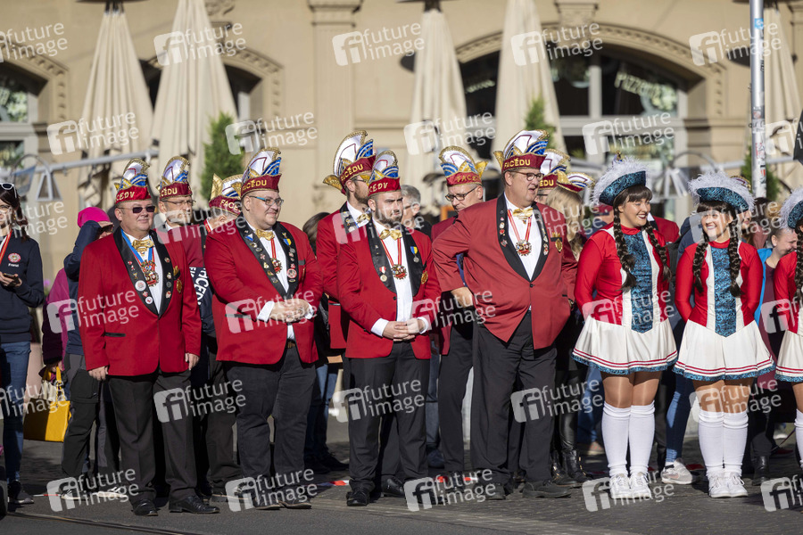 Karnevalisten beim Start des Erfuter Karnevals mit einem Mini-Umzug von ca. 2000 Erfurter Karnevalisten vom Hotel Radisson Blu über den Anger zum Fischmarkt vors Rathaus. Erfurt, 11.11.2022