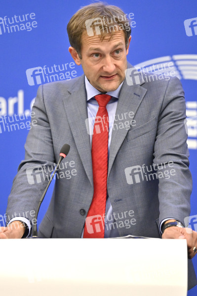 Christophe Hansen bei einer Pressekonferenz zur Verordnung über Entwaldung im Europäischen Parlament. Straßburg, 13.09.2022