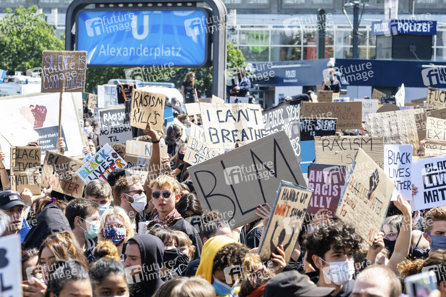 'Silent Demo' gegen Polizeigewalt und Rassismus nach dem Tod des Afroamerikaners George Floyd am Alexanderplatz. Berlin, 06.06.2020