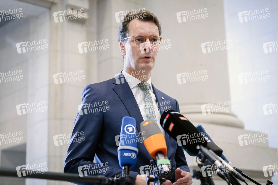 Hendrik Wüst beim Pressestatement am Rande der 1056. Sitzung des Bundesrates im Plenarsaal des Preußischen Herrenhauses. Berlin, 11.07.2025