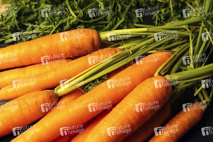 Essen, Nahrung, Speise, Ernährung, Gemüse, Karotte, Möhre, Mohrrübe, Gelbrübe, Gelbe Rübe, Rüebli, Riebli, Wurzel, Doldenblütler, Apiaceae, Gemüsepflanze, Daucus carota, Karottengrün, Karottenkraut, Möhrengrün, Symbolbild, Themembild