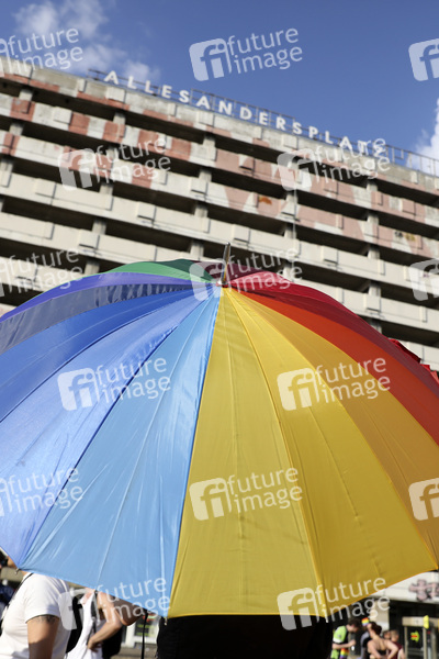 Protest für Gleichstellung: Tausende Demonstranten ziehen in Berlin unter dem Dach des Christopher Street Day zum Alexanderplatz. Wegen der Pandemie wurden die Teilnehmer auf drei Züge aufgeteilt, die sich für verschiedene politische Interessen einsetzten. Berlin, 26.06.2021