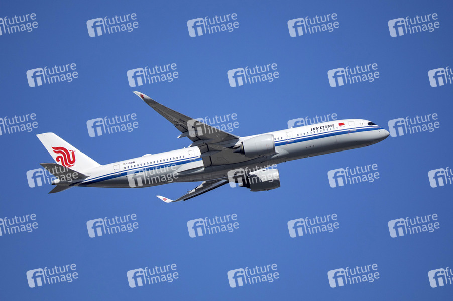 Startender Jet nach China im Osterflugfreiseverkehr am Frankfurter Flughafen Fraport. Frankfurt, 03.04.2021