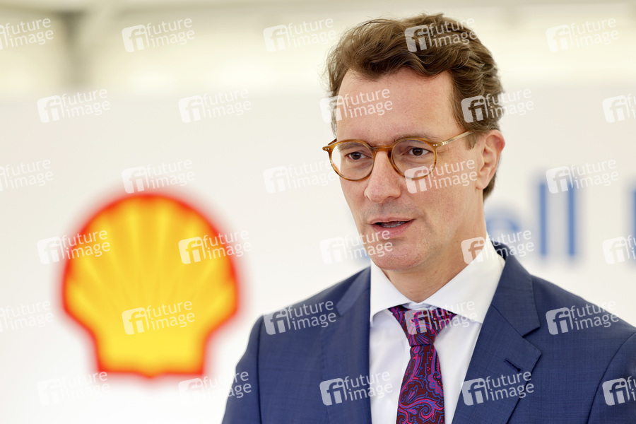 Politiker, CDU, Union, Ministerpräsident des Landes Nordrhein-Westfalen, NRW-Ministerpräsident, Auftritt, Shell, Industrie, Raffinerie, Royal Dutch Shell, Produktionsanlage, Gaskonzern, Gasindustrie, Ölindustrie, Ölkonzern, Treibstoff, Klimaziele, Förderung, Energiewende, Chemieindustrie, Kohlendioxid-Ausstoß, Gas, Erneuerbare Energien, Umweltschutz, Energietechnik, Umweltpolitik, Gaspreis, Gaspreise, Industriepolitik, Energiepolitik, Shell Energy, Chemicals Park Rheinland, CO2-neutral, Nachhaltigkeit, CO2-Neutralität, Biogas, Bio-Gas, Bio-LNG, flüssiges Gas, Biomethan, Methangas, Methan-Gas, Baustelle
