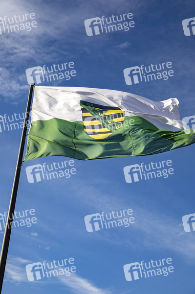Flagge des Bundeslandes Sachsen mit Wappen. Koblenz, 17.11.2020