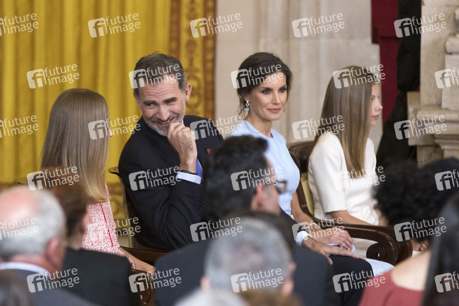 Prinzessin Leonor, König Felipe, Königin Letizia und Prinzessin Sofia bei der Verleihung der Orden del Mérito Civil im Palacio Real. Madrid, 19.06.2019