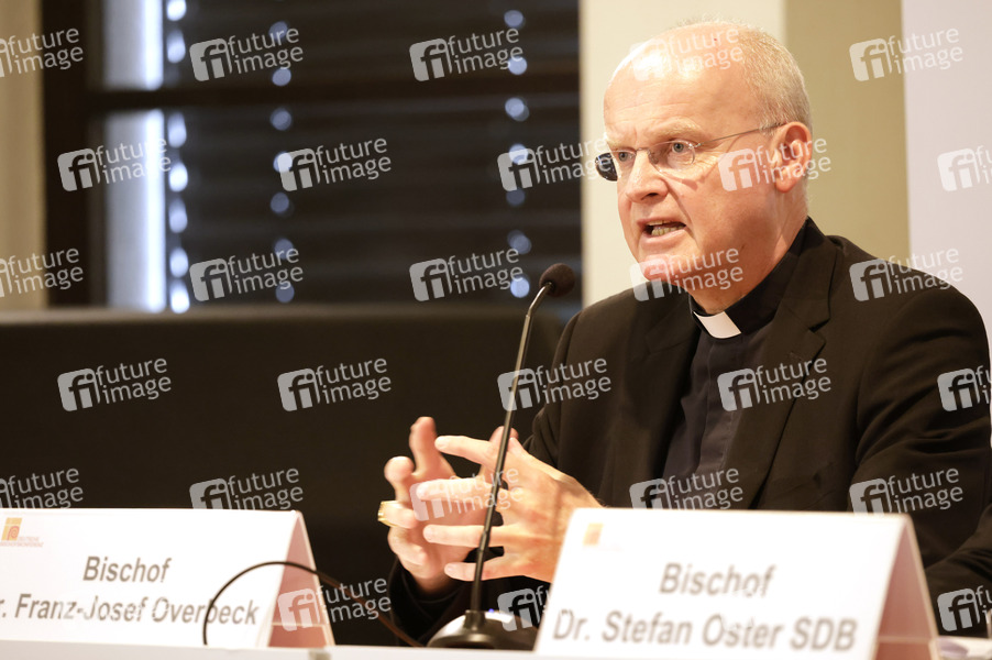 Franz-Josef Overbeck beim Pressegespräch zur Vorbereitung der Weltsynode in Rom auf der Herbst-Vollversammlung der Deutschen Bischofskonferenz im Dompfarrzentrum. Fulda, 24.09.2024