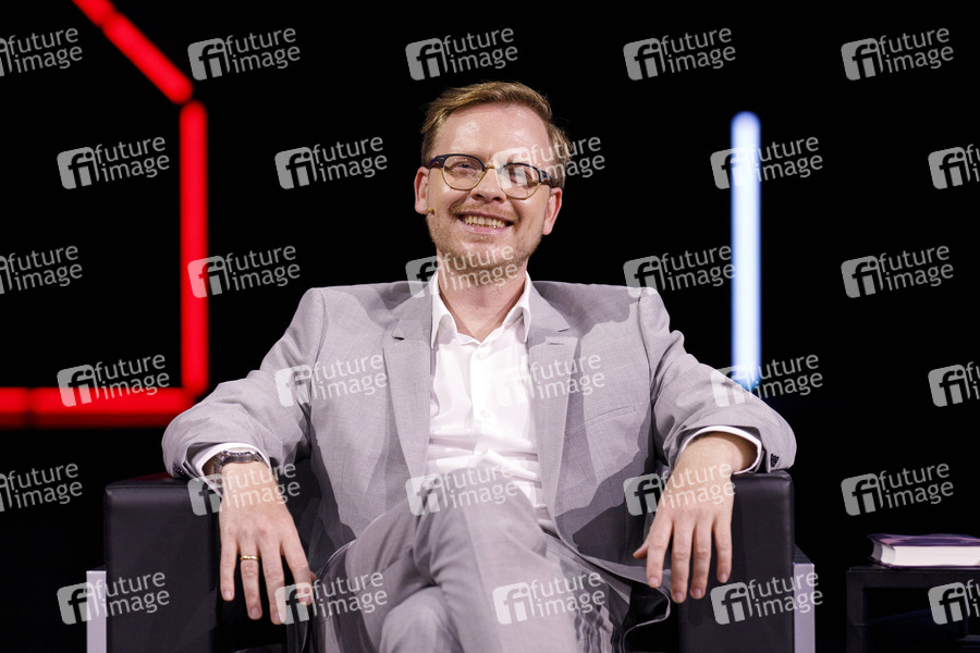 Markus Gabriel bei der lit.Cologne Veranstaltung 'Zwischen Gut und Böse - Markus Gabriel und Gert Scobel entwerfen eine Philosophie der radikalen Mitte' als Stream aus dem Theater am Tanzbrunnen. Die lit.Cologne 2021 findet wegen der Corona-Pandemie als digitales Event mit Streams statt. Köln, 04.06.2021
