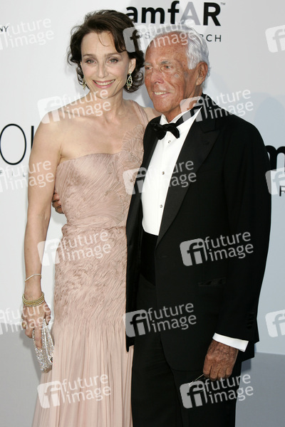 Kristin Scott Thomas und Giorgio Armani bei der amfAR Gala Cannes im Rahmen vom Festival de Cannes 2010 / 63. Internationale Filmfestspiele von Cannes im Hôtel du Cap-Eden-Roc. Antibes, 20.05.2010