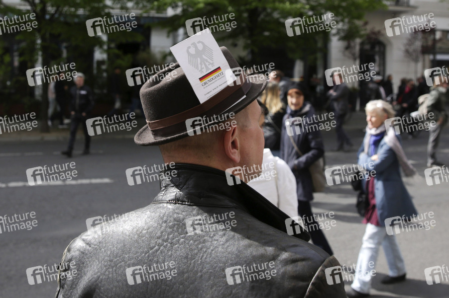 In der Rosa Luxemburg Straße demonstrieren Anhänger der 'Hygienedemo' gegen die Coronamaßnahmen der Bundesregierung. Am Alexanderplatz sollen ab 14 Uhr insgesamt zehn Kundgebungen starten. Berlin, 16.05.2020