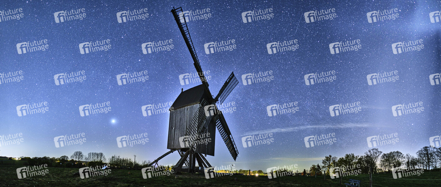 Sehenswürdigkeit, Sightseeing, Mühle, Windmühle, funktionsfähiges kulturhistorisches Denkmal, Ständermühle, Kastenmühle, Mühlenhaus, Hausbaum, technisches Bauwerk, Flügle, Windmühlenflügel, Windenergie, Energieumwandlung, Nacht, Sterne, Sternenhimmel