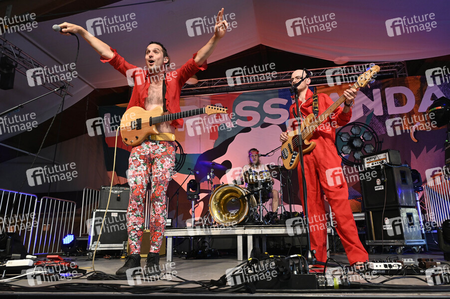 Peter Mayer, Reinhard Hörschläger und Tobias Vedovelli von Beda live beim Festakt zum 100. Geburtstag vom SSV Eggenfelden in der Rottgauhalle. Eggenfelden, 17.06.2022